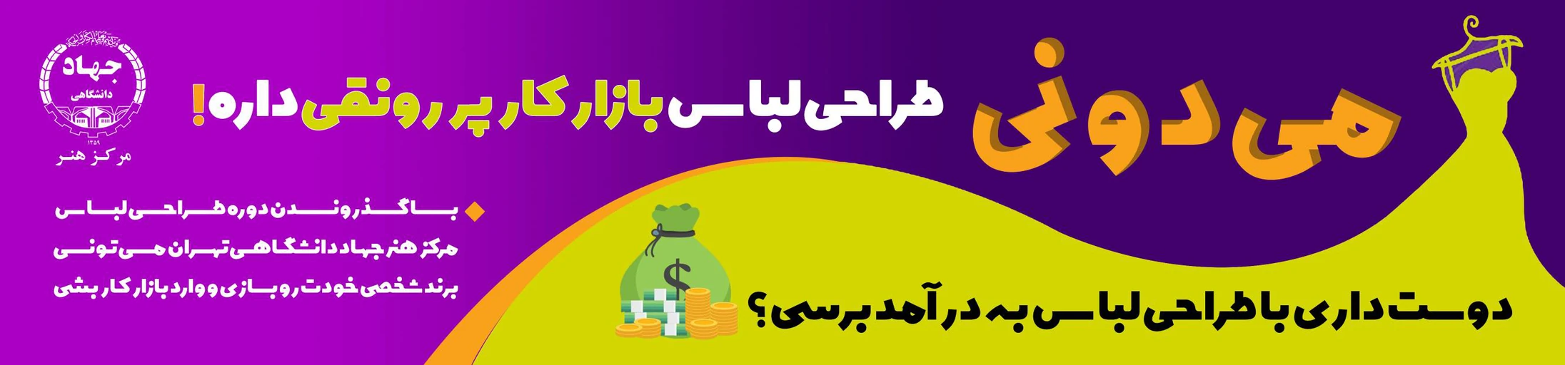 در دوره ی طراحی لباس مرکز هنر جهاد دانشگاهی تهران میآموزیم که چطور به عنوان یک طراح لباس مطرح شویم و کسب درآمد کنیم.