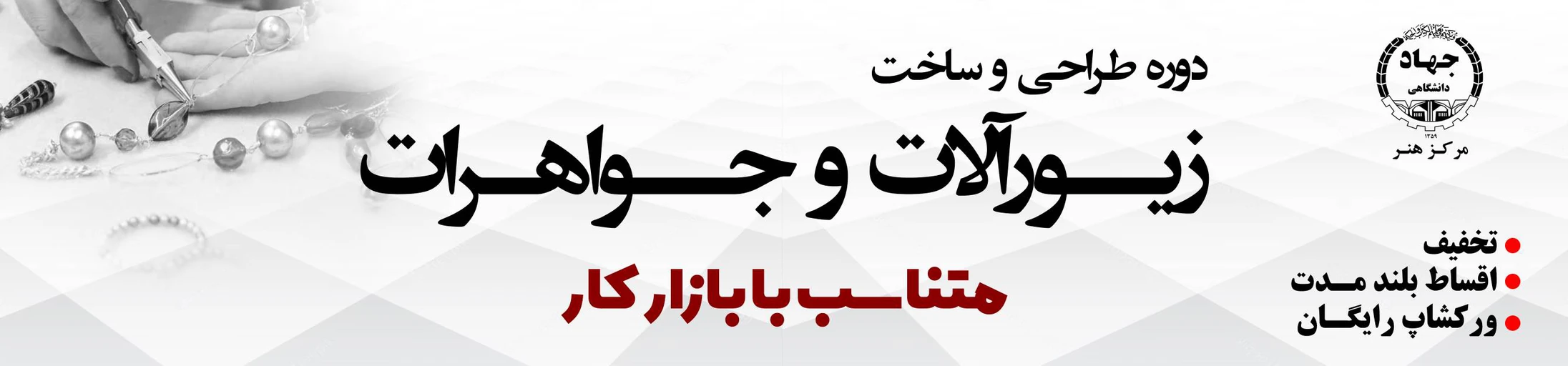 در دوره های جواهرسازی در مرکز هنر جهاد دانشگاهی تهران میآموزیم که چطور به عنوان یک طراح و سازنده جواهرات و زیورآلات مطرح شویم و کسب درآمد کنیم.